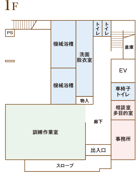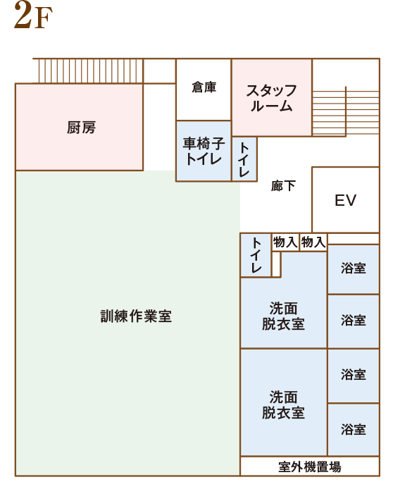 | 訓練作業室面積 | 174.37㎡(1階58.88㎡、2階115.49㎡) |